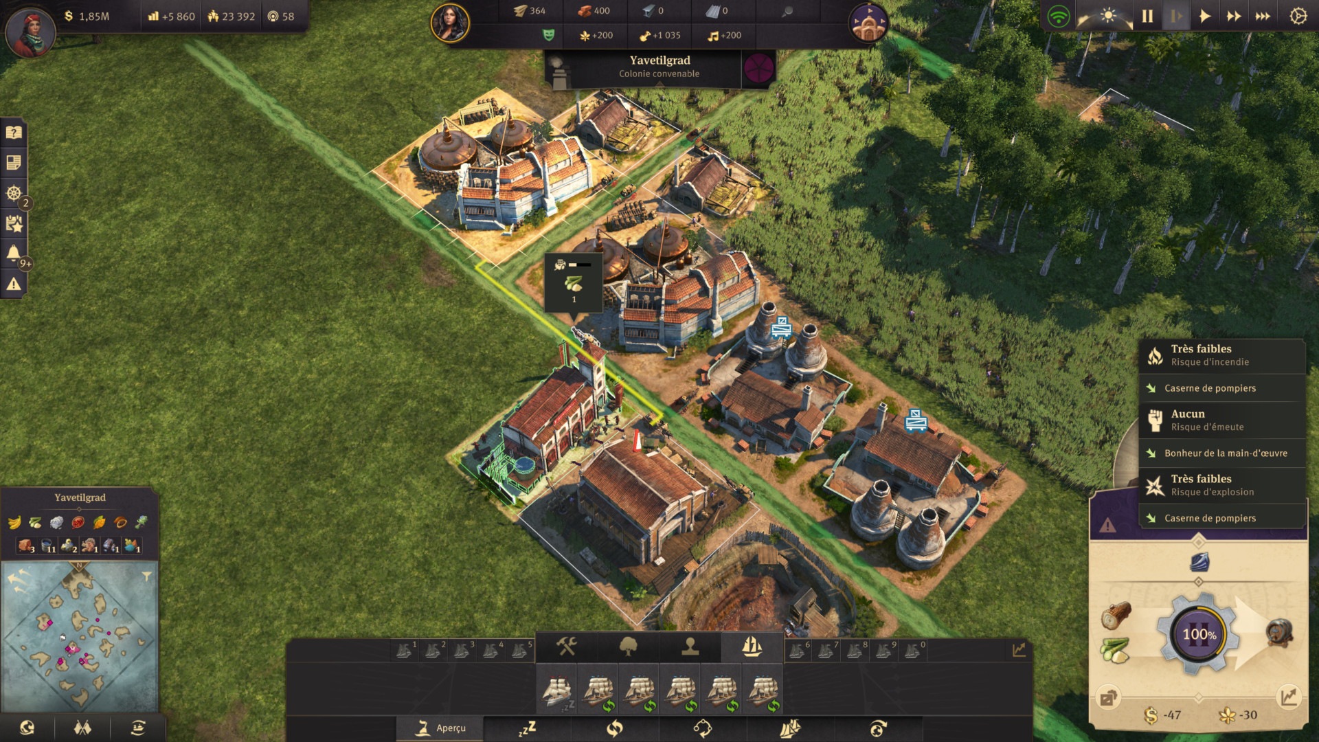 Avec cette configuration, votre partie se focalise sur les mécaniques majeures d’Anno, à savoir le développement des îles et la mise en place de chaînes de production au poil de fion près.