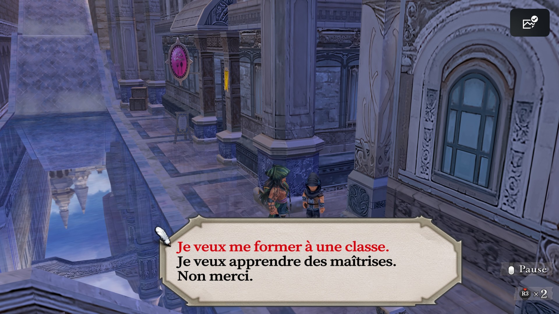 A partir du moment où elle est maîtrisable, une classe doit être équipée au moins une fois chez un mentor avant de pouvoir être équipée depuis le menu dans n’importe quelle ville.