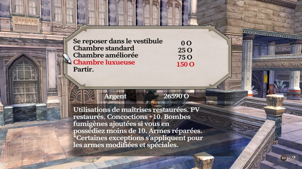 Les combats en rapportent peu, mais vous lootez des objets qui se vendront à des prix corrects. Minez, récoltez et équipez les maîtrises “chercher des coffres” et “désarmer des pièges”, les coffres contiennent souvent de l’or. Investissez rapidement pour vos personnages dans des sorts de soin (hydrologie, pyrologie, cosmologie ou ensorcellement) ou utilisez les arts martiaux jusqu’à débloquer second souffle (c’est assez rapide en mode défense). Cela vous évitera de dépenser tout votre or en potion. Évitez aussi de tremper vos armes dès le départ, ou vous devrez payer à chaque réparation. Privilégiez une nuit à l’hôtel pour réparer toutes les armes du groupe