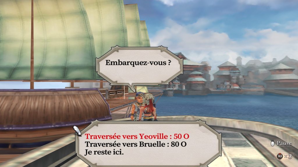 Comme pour Gray, Hawke dispose vite d’une importante réserve de PC, ce qui permet de démarrer le combat vite et fort. Il doit toutefois composer avec un taux de regen assez lent. Sa classe de pirate ne paie pas de mine mais son bonus de vitesse en fait un atout, pouvoir lancer un soin en début de tour peut vous sauver la mise plus d’une fois. Vite libre si on ne se perd pas dans la mer de Corail, il débute avec un des meilleurs compagnons du jeu : Guella Ha.