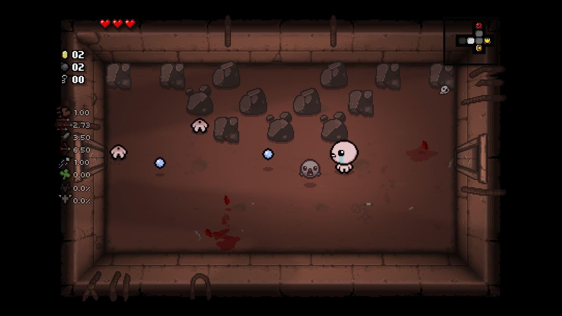 Ce qu’il faut savoir, c’est que les Binding of Isaac sont des rogue-like, ce qui veut dire que chaque partie sera unique avec des donjons à la structure différente, ainsi que des placements d’ennemis, d’objets, de pouvoirs, etc., aléatoires. Donc votre première partie sera forcément différente de celle que je vais illustrer ici (à moins de tomber pile sur la même, ce qui serait improbable).